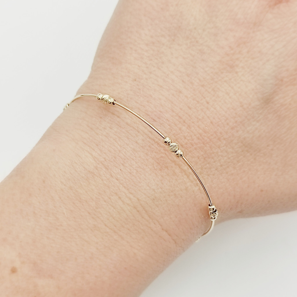 A klasszikus szemláncok mellett merev karperecek és modern formavilágú díszített karkötők is elérhetők, így könnyen választhatsz alkalomhoz, hangulathoz vagy akár ajándékozási szándékhoz igazodva. Minden darab 14 karátos aranyból készül, időtálló minőséget és eleganciát képviselve.