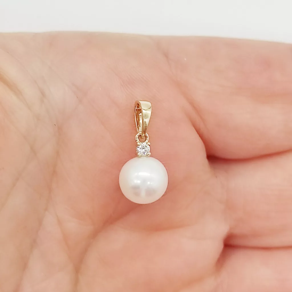 Sárga arany medál gyémánttal és gyönggyel