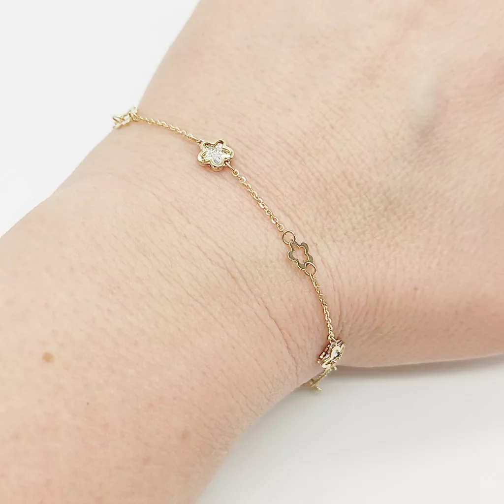 Sárga arany metszett virágos karlánc