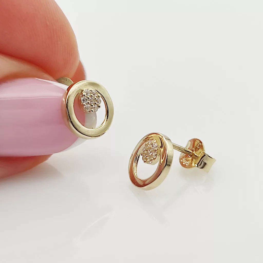 Sárga arany modern kör fülbevaló cirkóniákkal