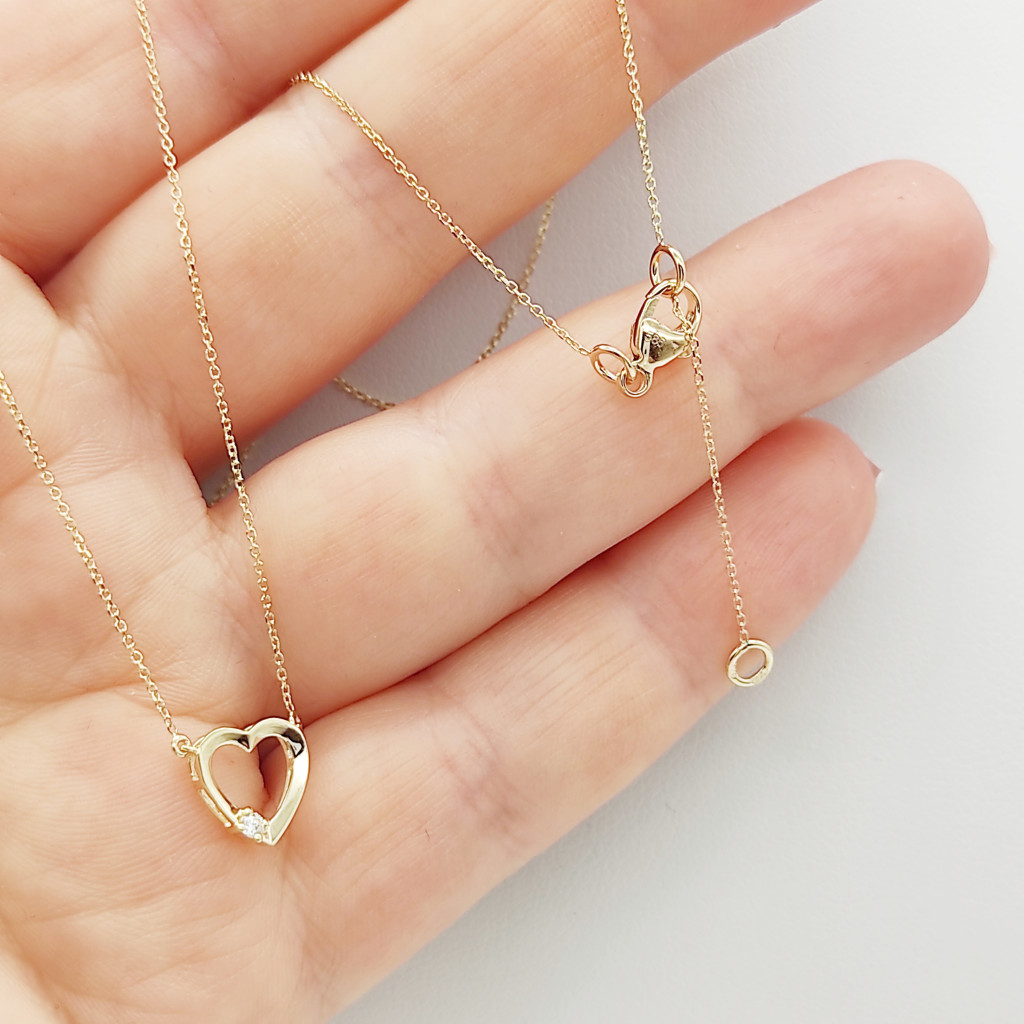 Sárga arany nyaklánc gyémánt szív medállal