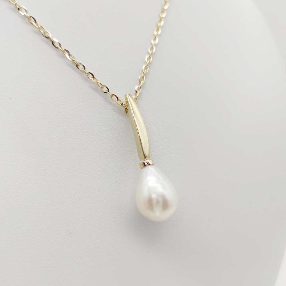 Sárga arany nyaklánc tenyésztett gyöngy medállal