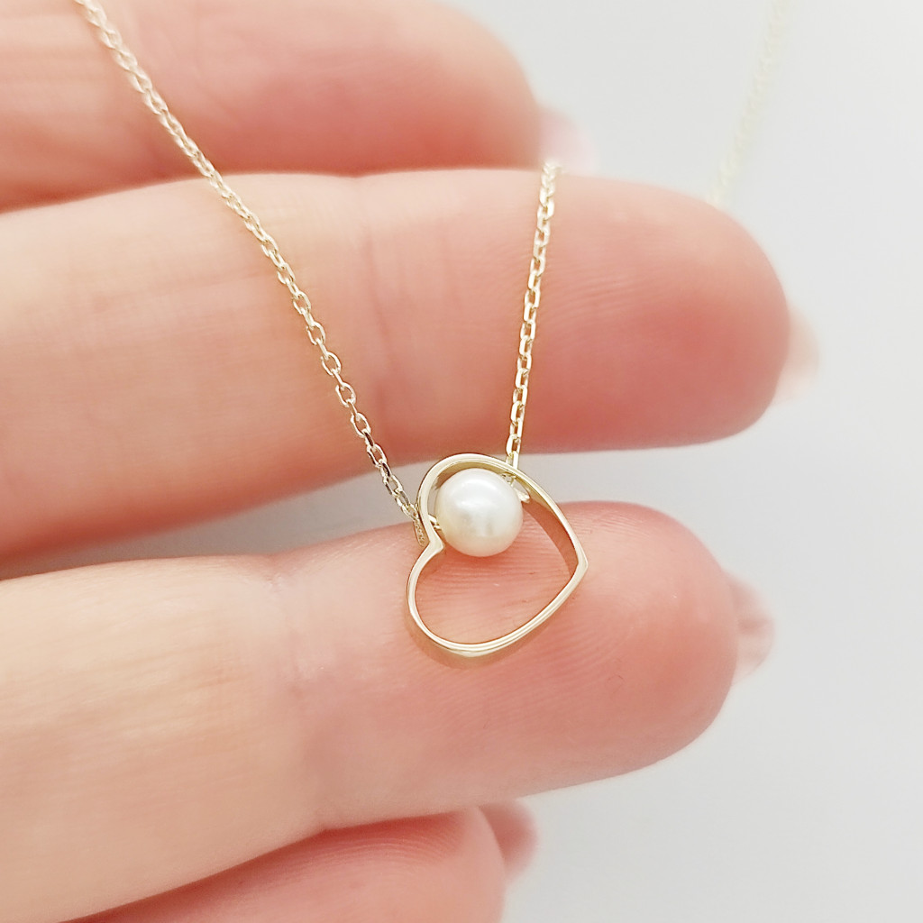 Sárga arany nyaklánc kis szívvelés gyönggyel