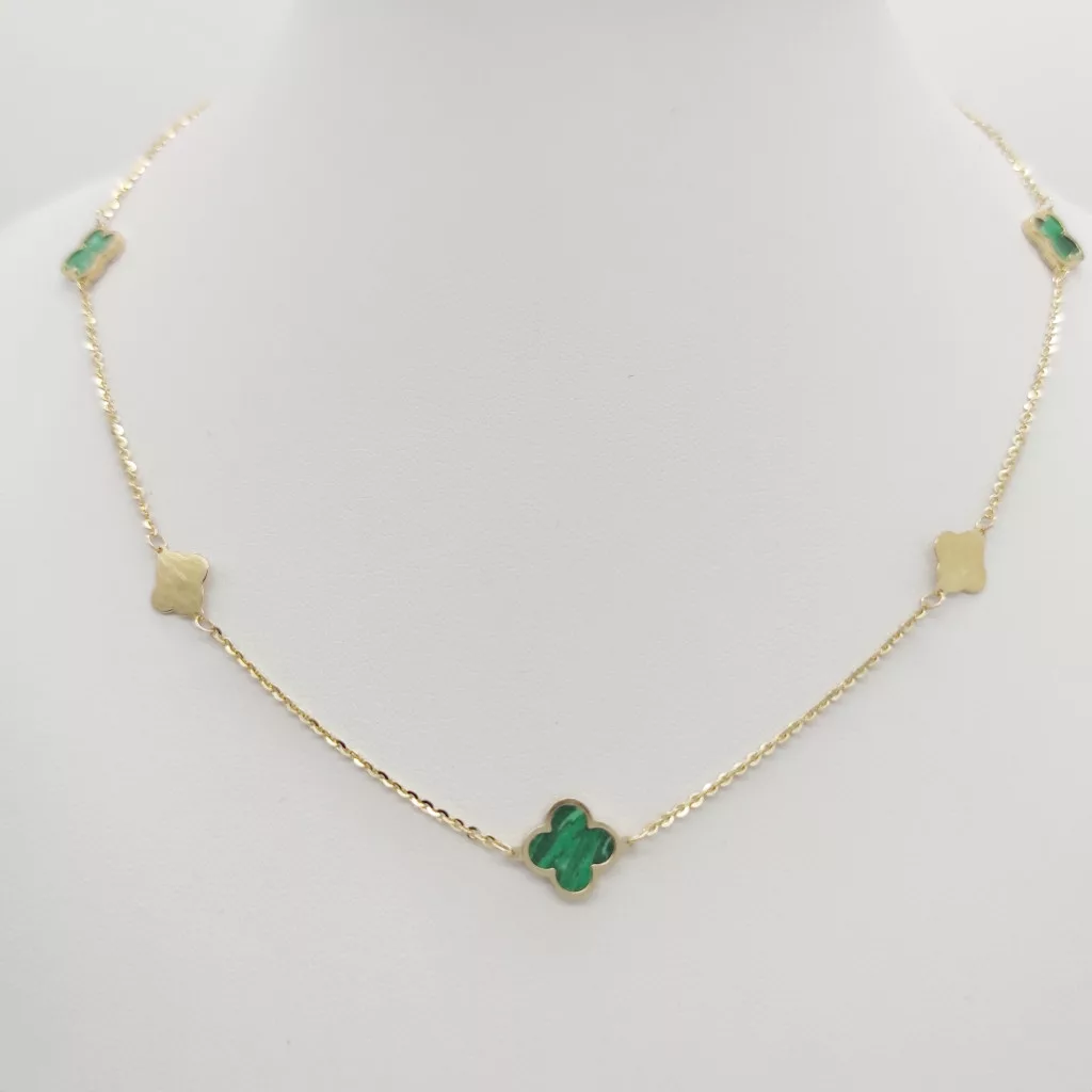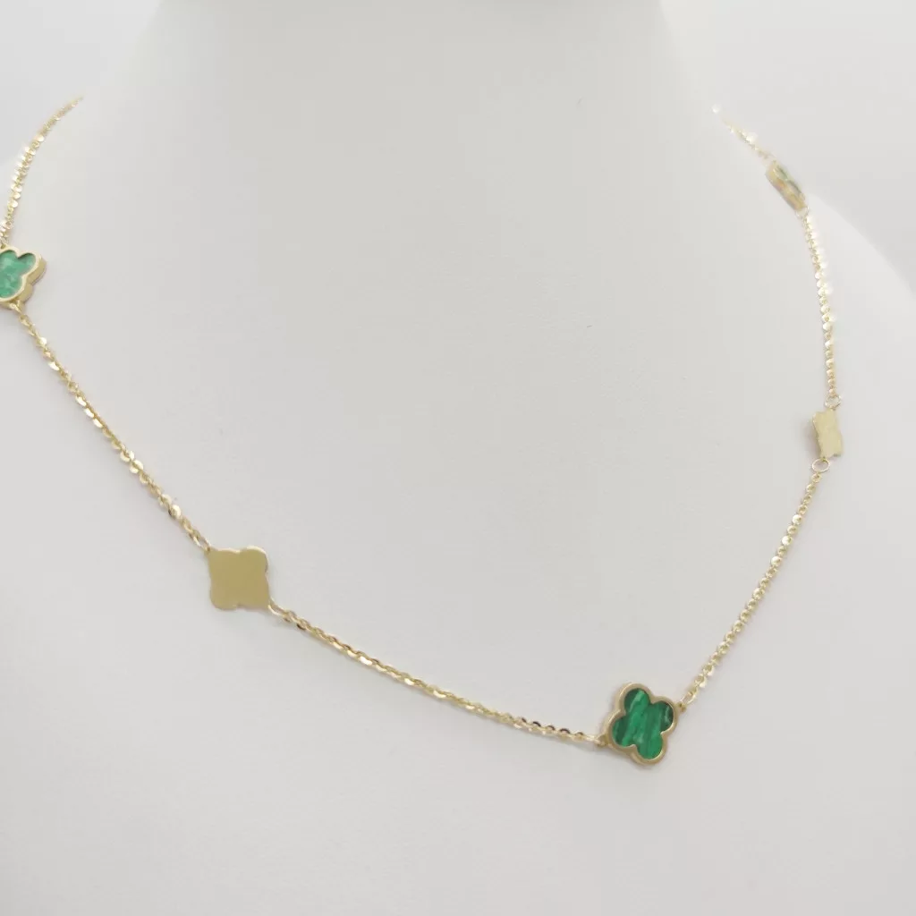Sárga arany nyaklánc zöld lóherékkel