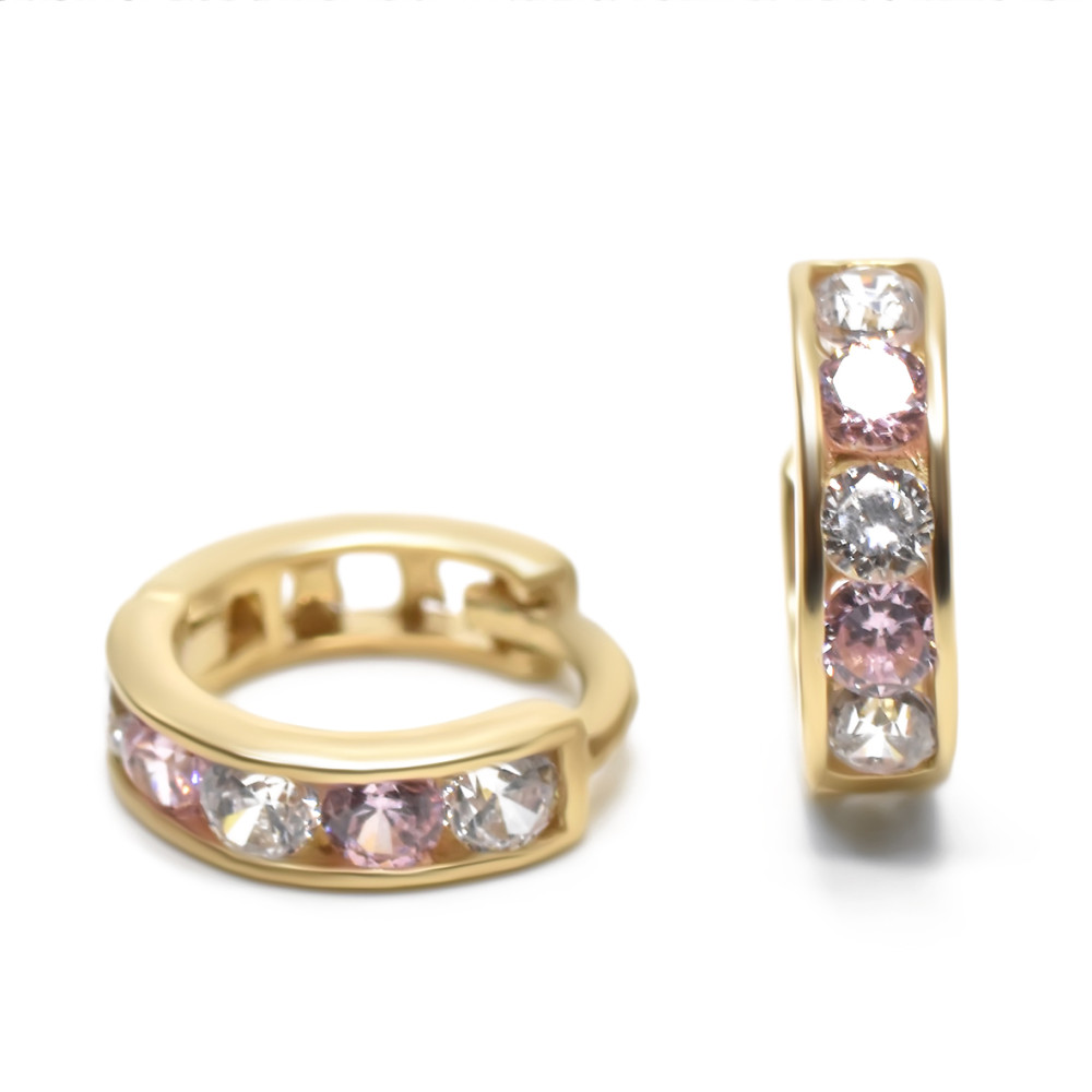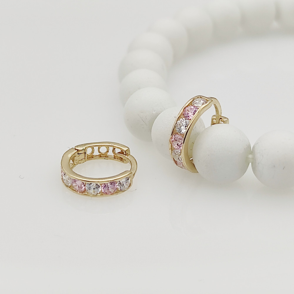 Sárga arany rózsaszín-fehér köves karika fülbevaló
