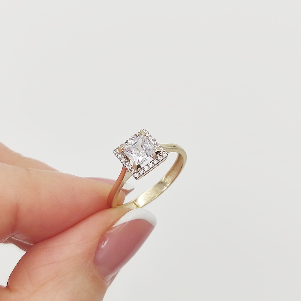 Sárga arany szikrázó szögletes köves gyűrű