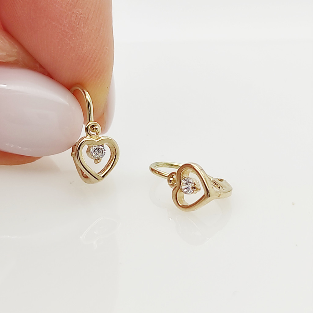 Sárga arany szíves fülbevaló fehér kővel