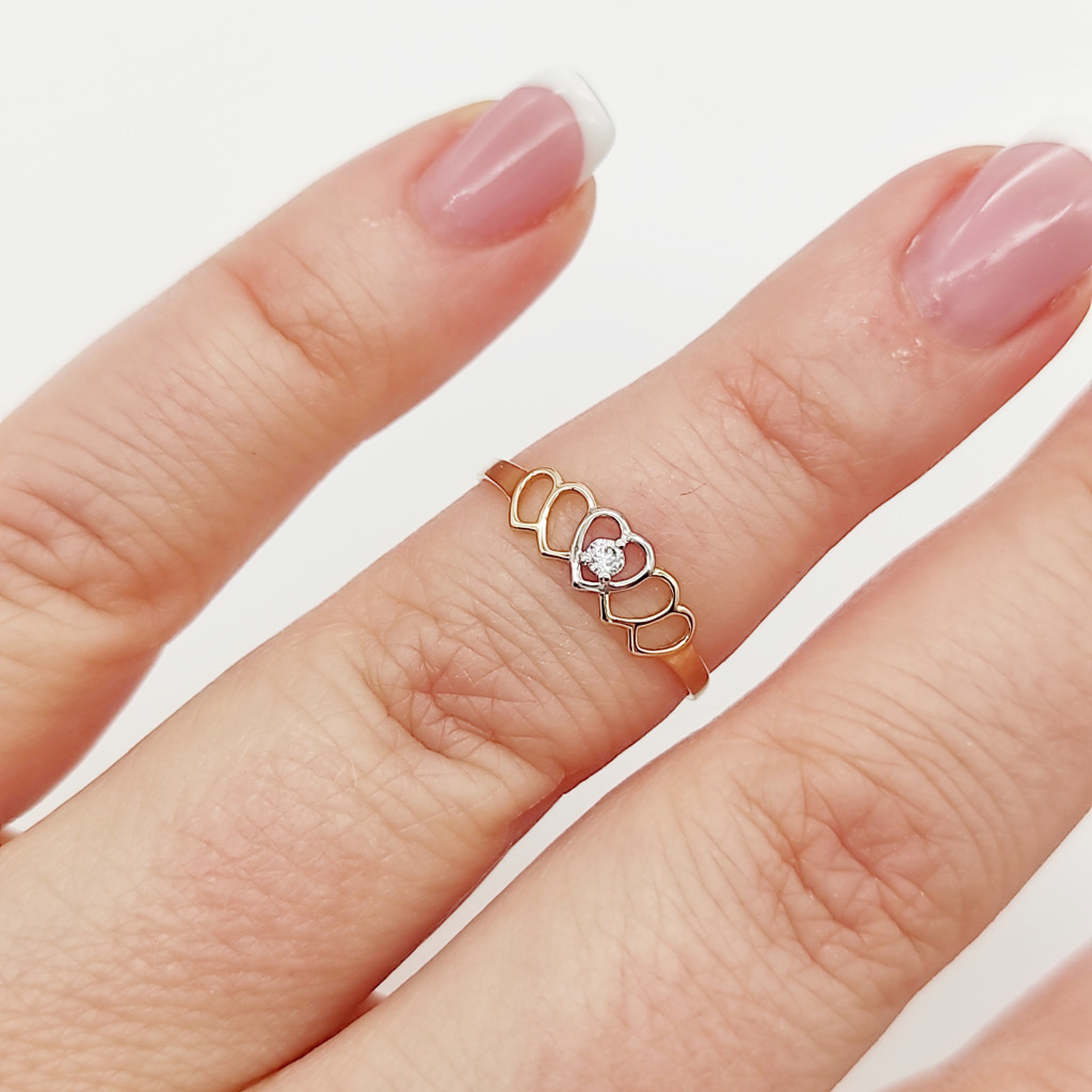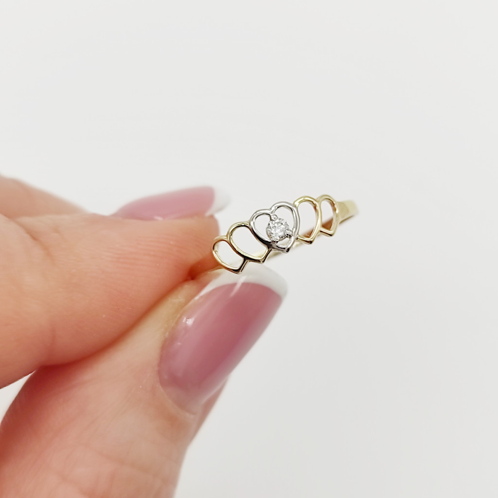 Sárga-fehér arany szívecskés gyűrű