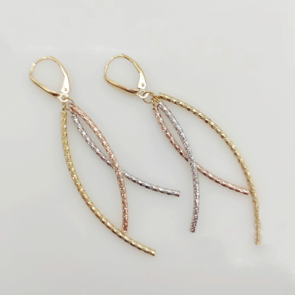 Trikolor metszett arany modern fülbevaló