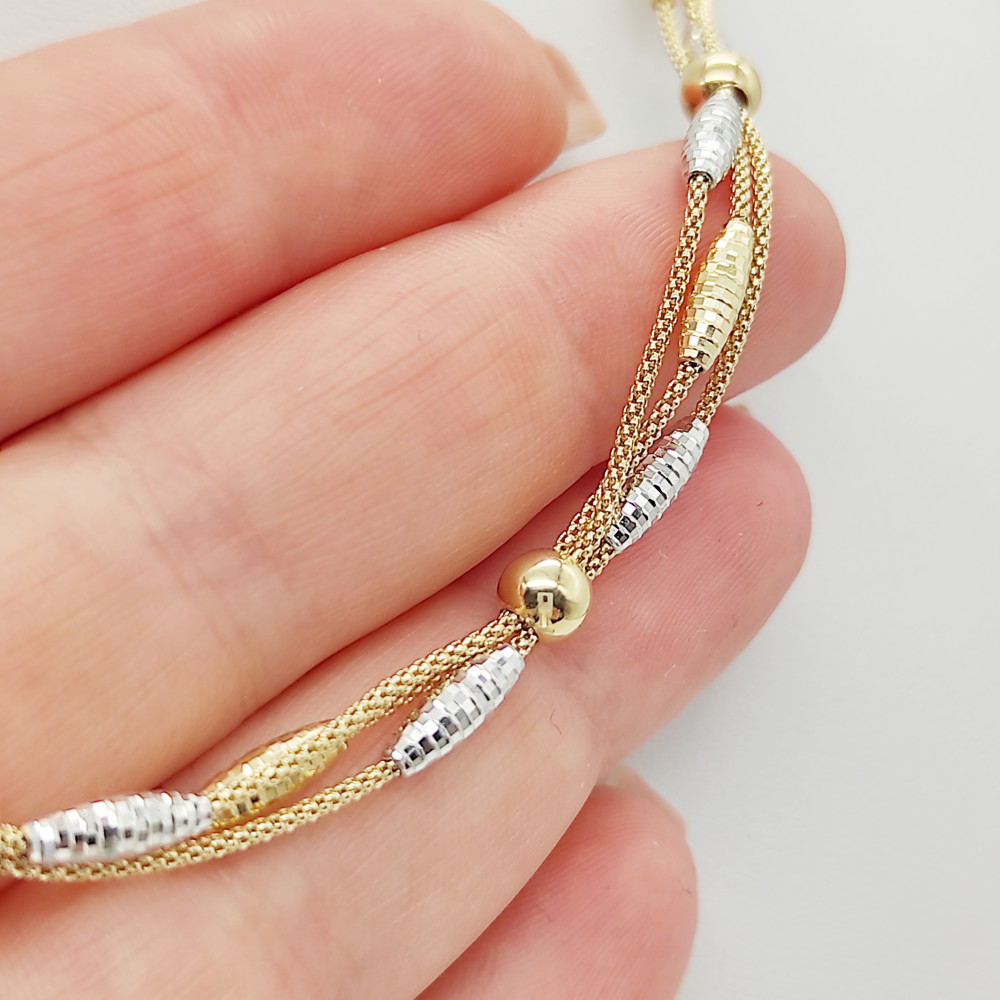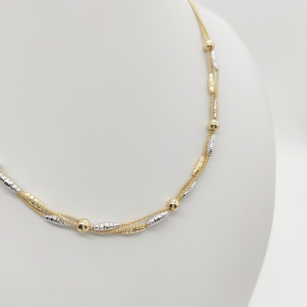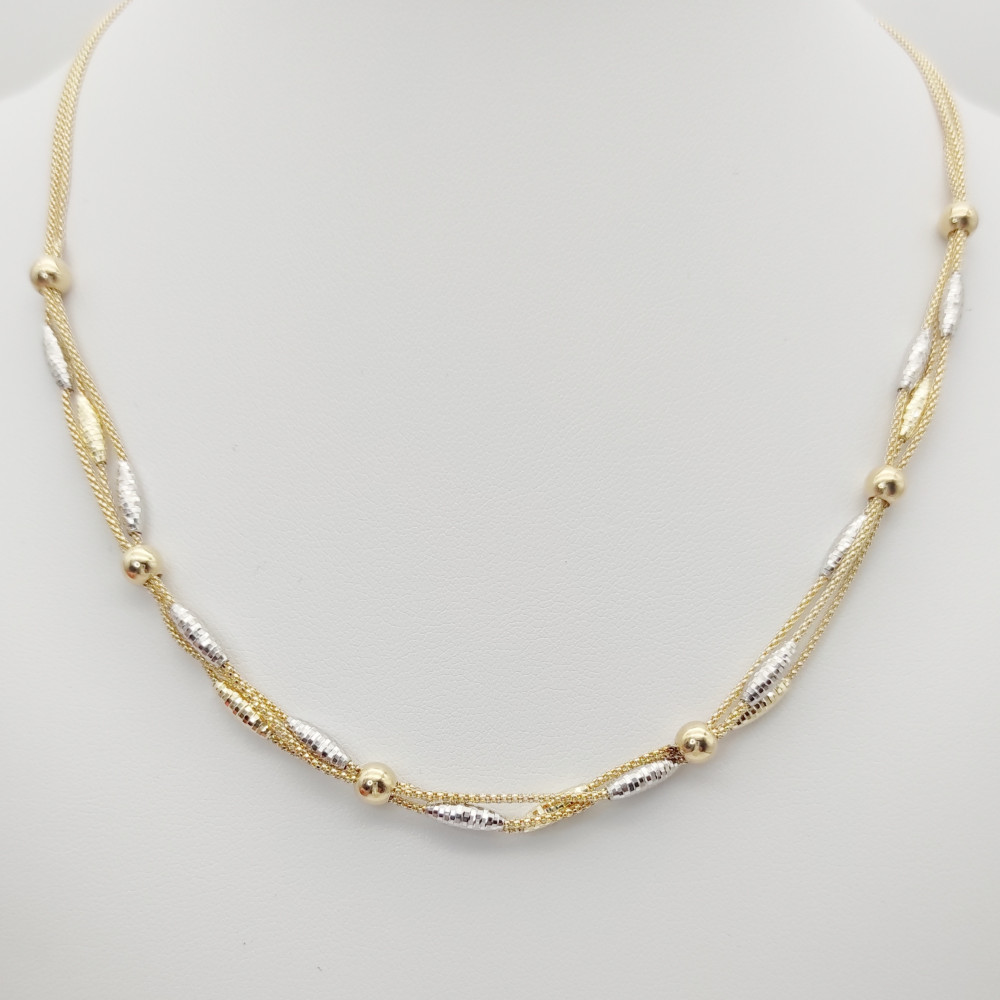 Tripla soros sárga-fehér metszett mintás arany nyaklánc