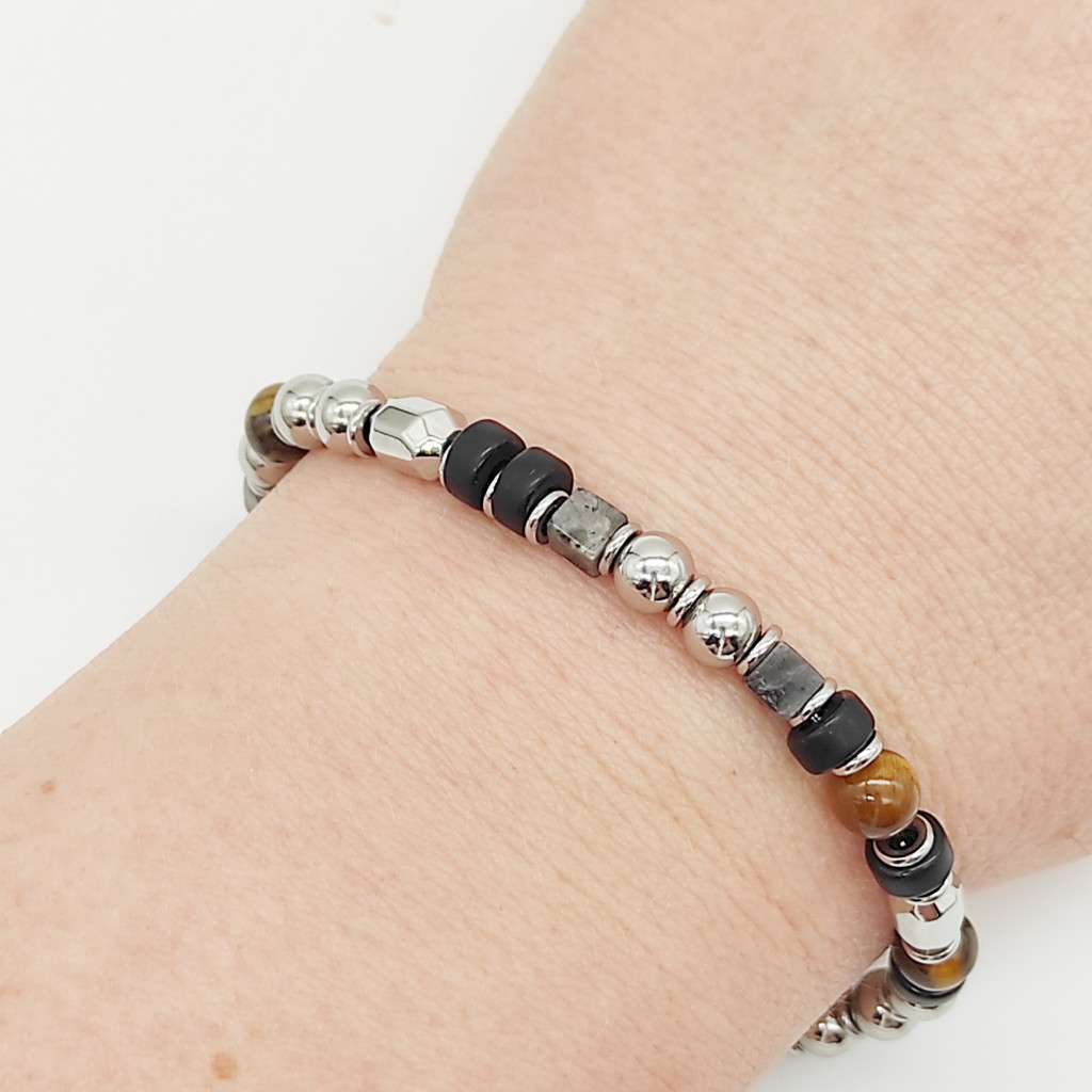 Nomination Instinctstyle nemesacél karkötő - tigrisszem, lávakő