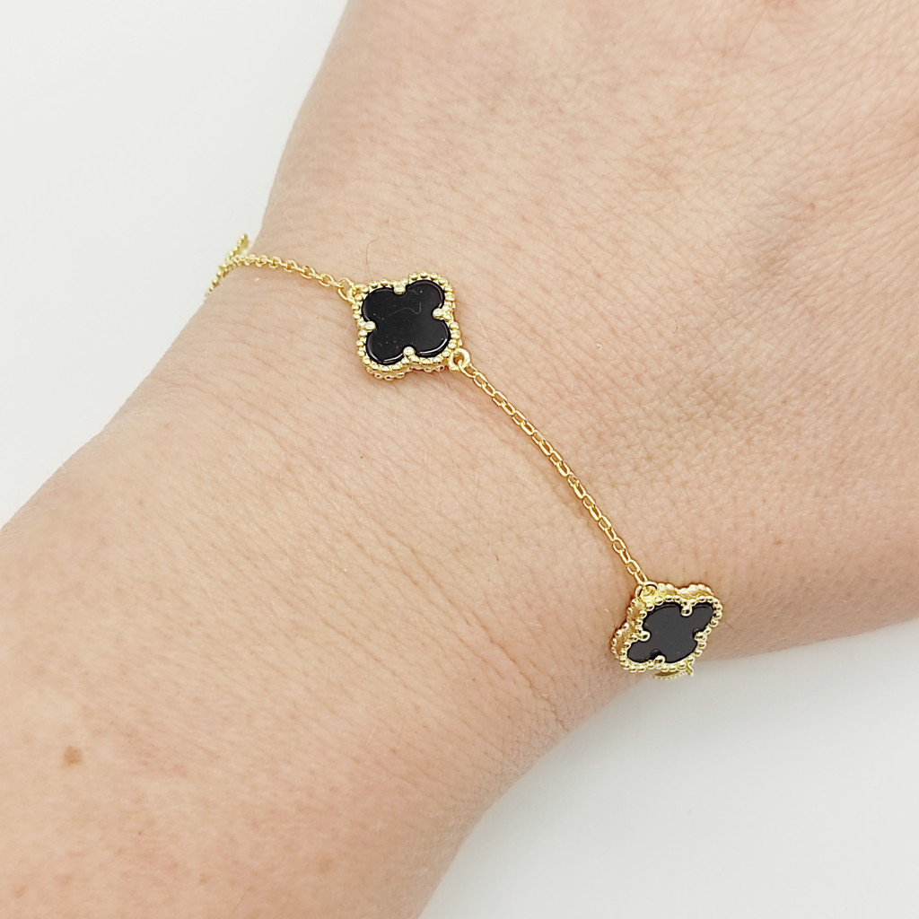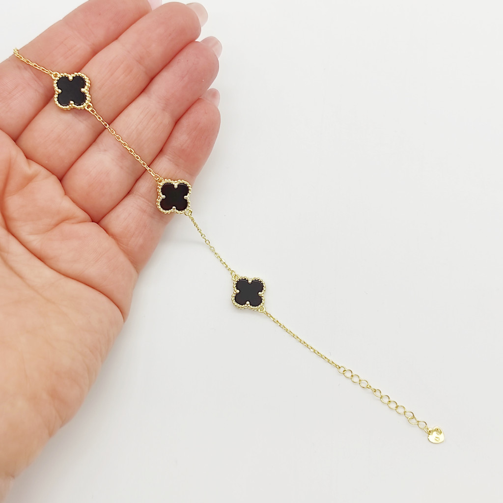 Aranyozott ezüst karlánc 3 fekete lóhere medállal
