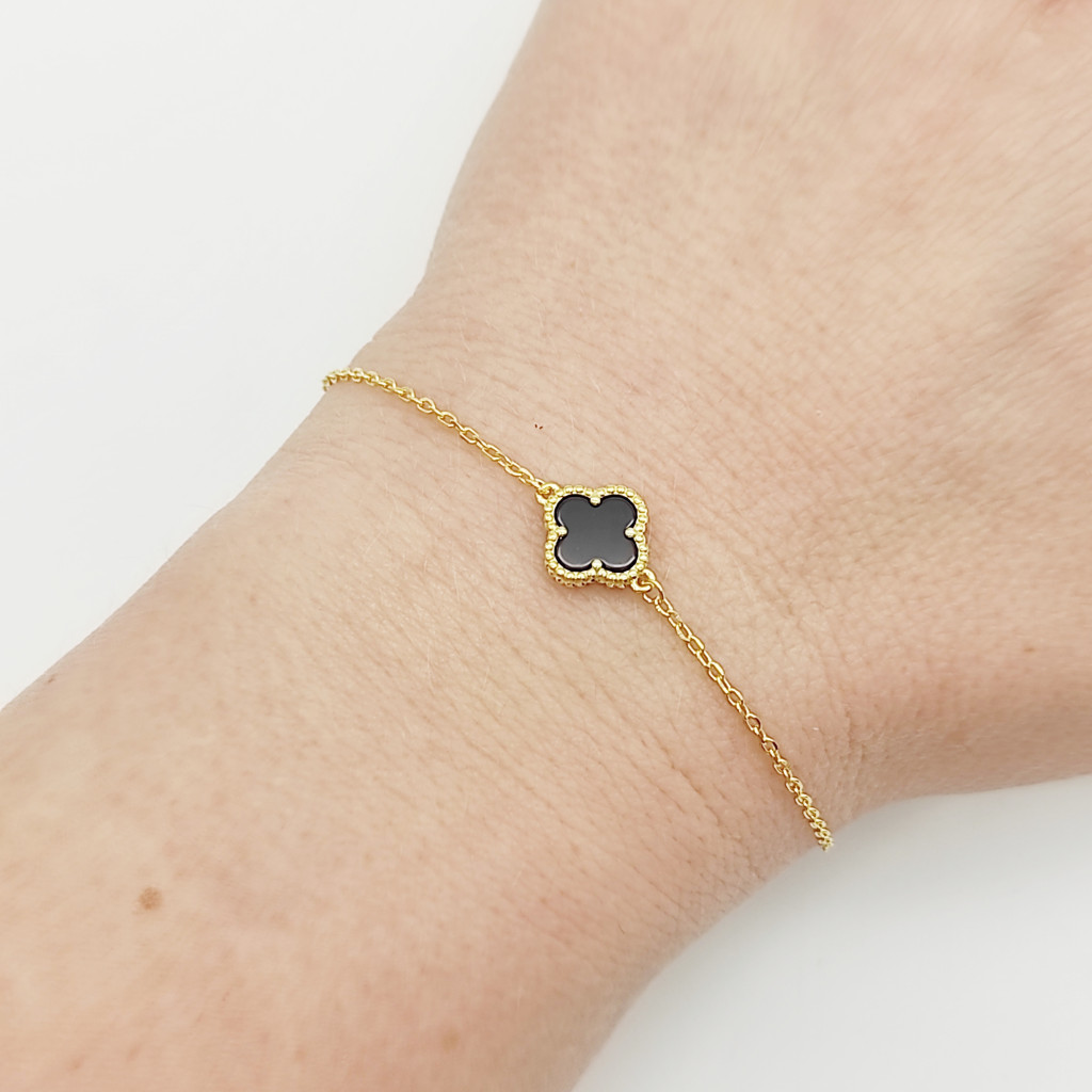 Aranyozott ezüst karlánc fekete lóhere medállal
