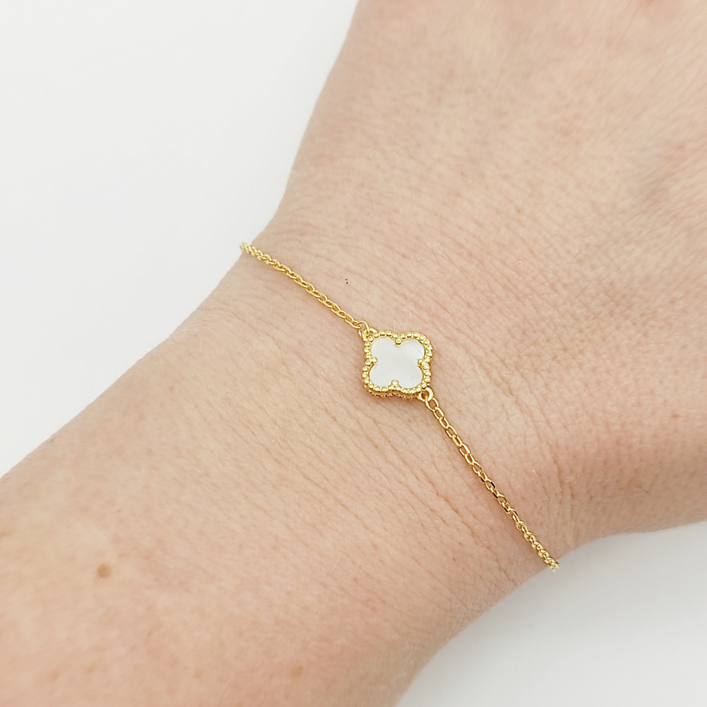 Aranyozott ezüst karlánc gyöngyház lóhere medállal