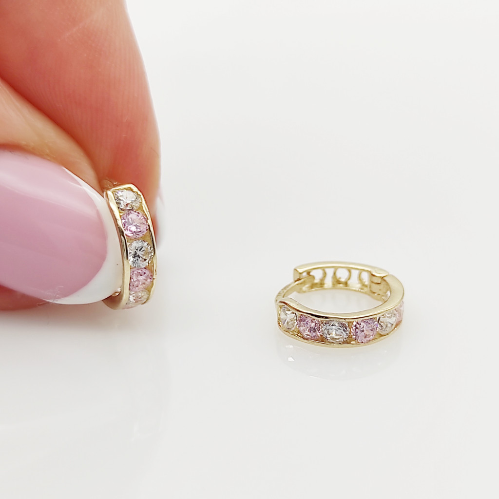Sárga arany rózsaszín-fehér köves karika fülbevaló