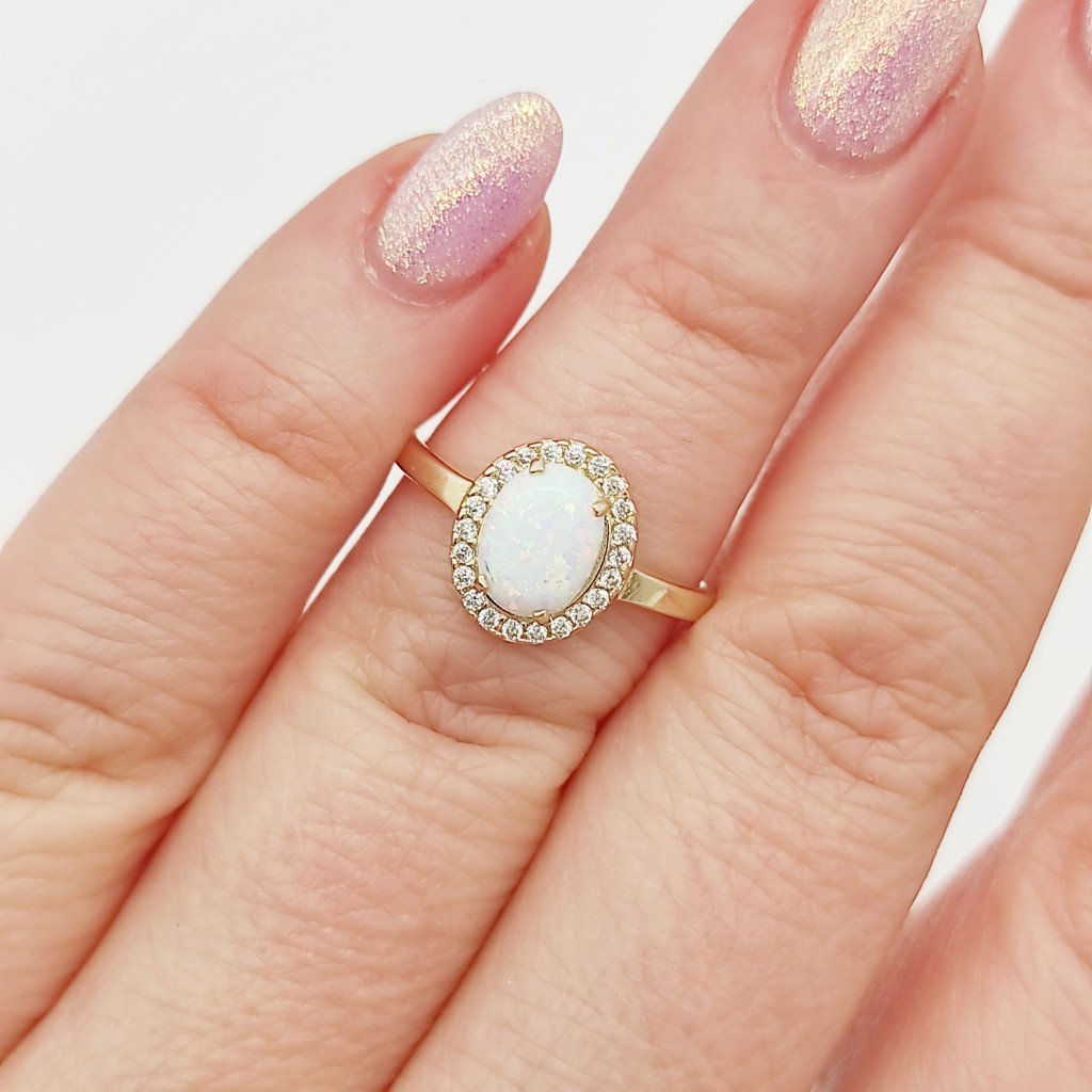 Sárga arany gyűrű fehér opállal