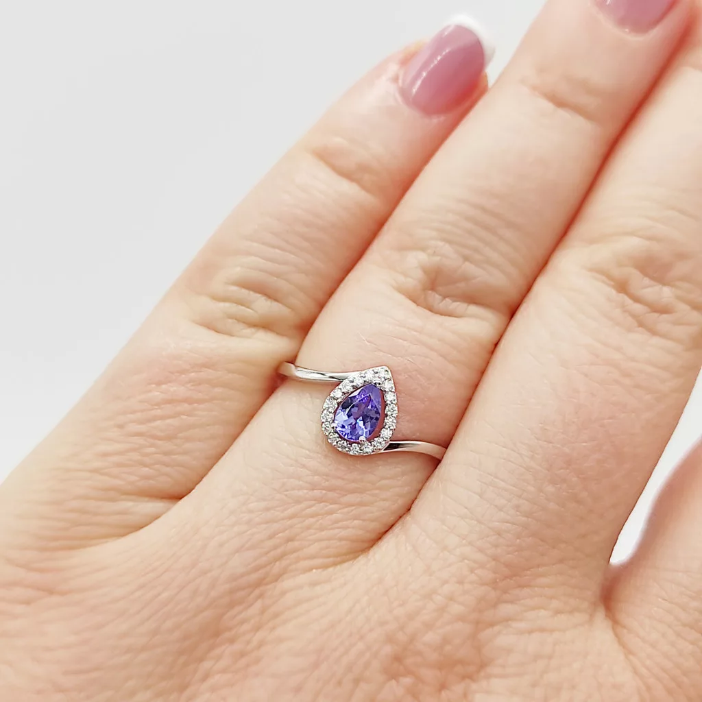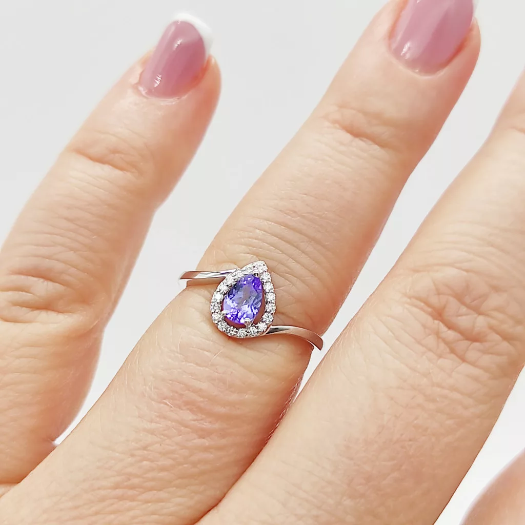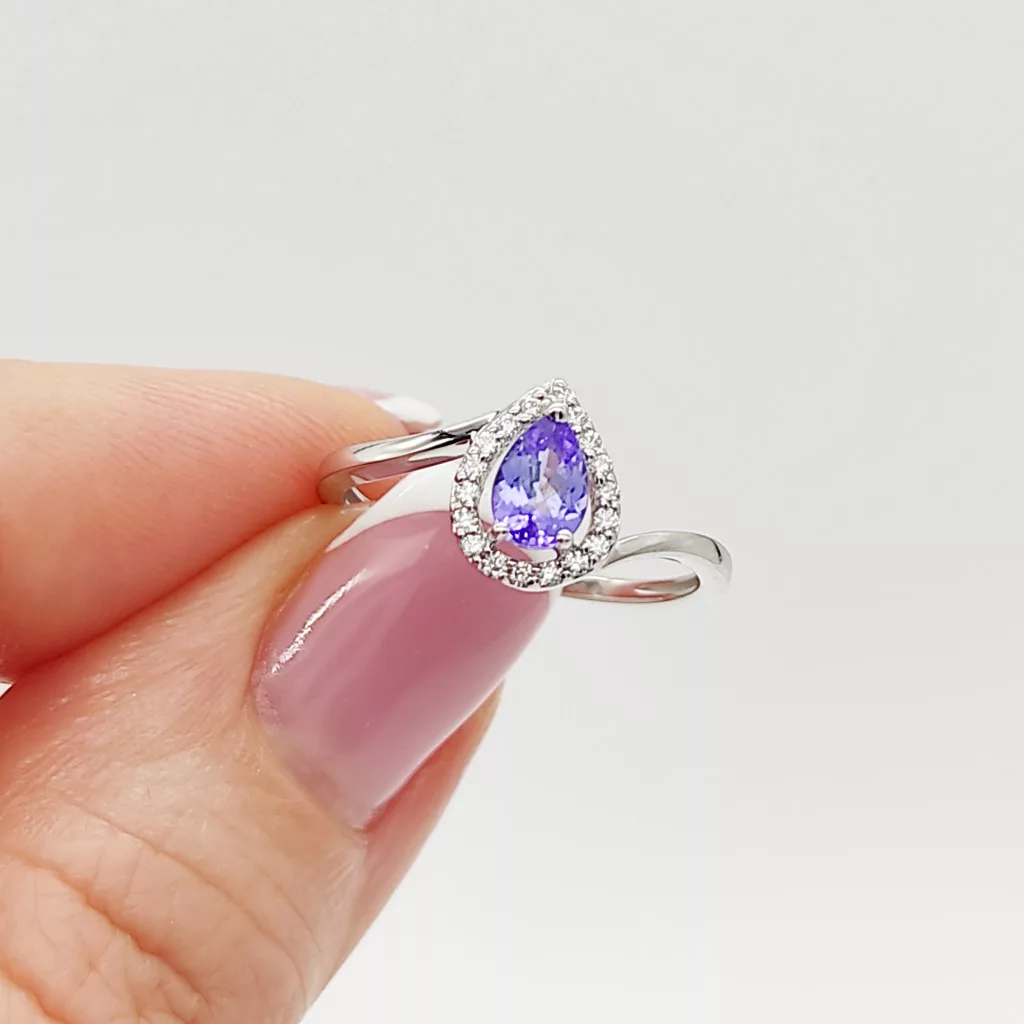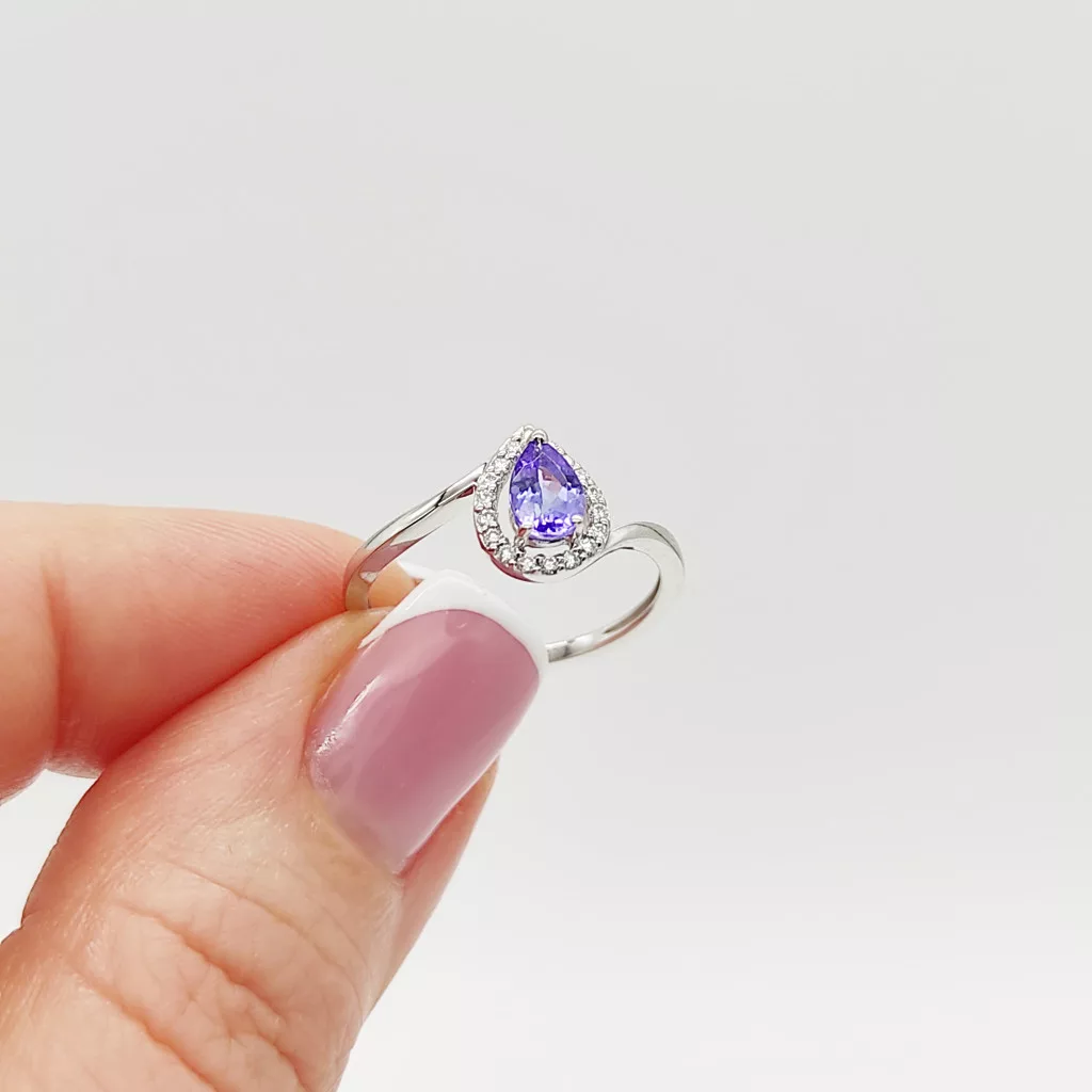 Fehér arany gyűrű gyémánttal és tanzanittal