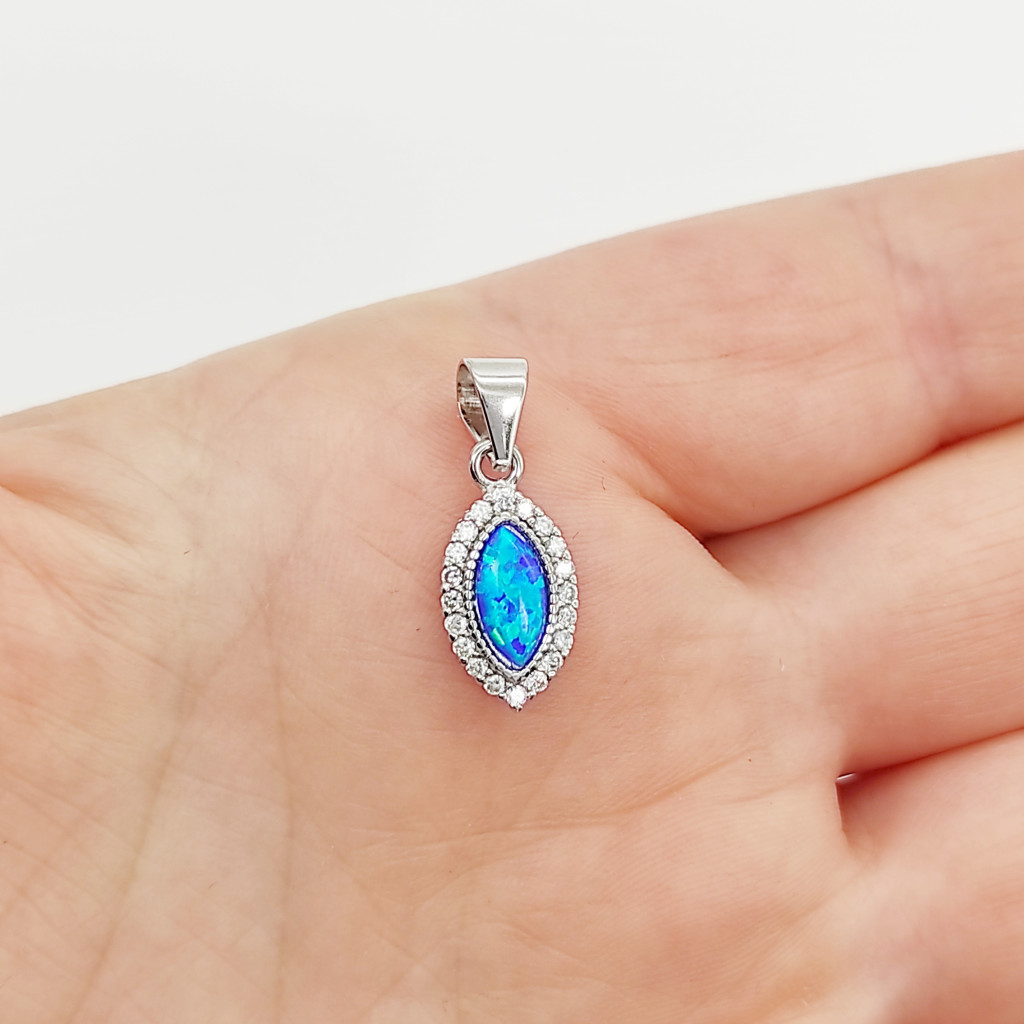 Ezüst medál kék opállal és cirkóniával