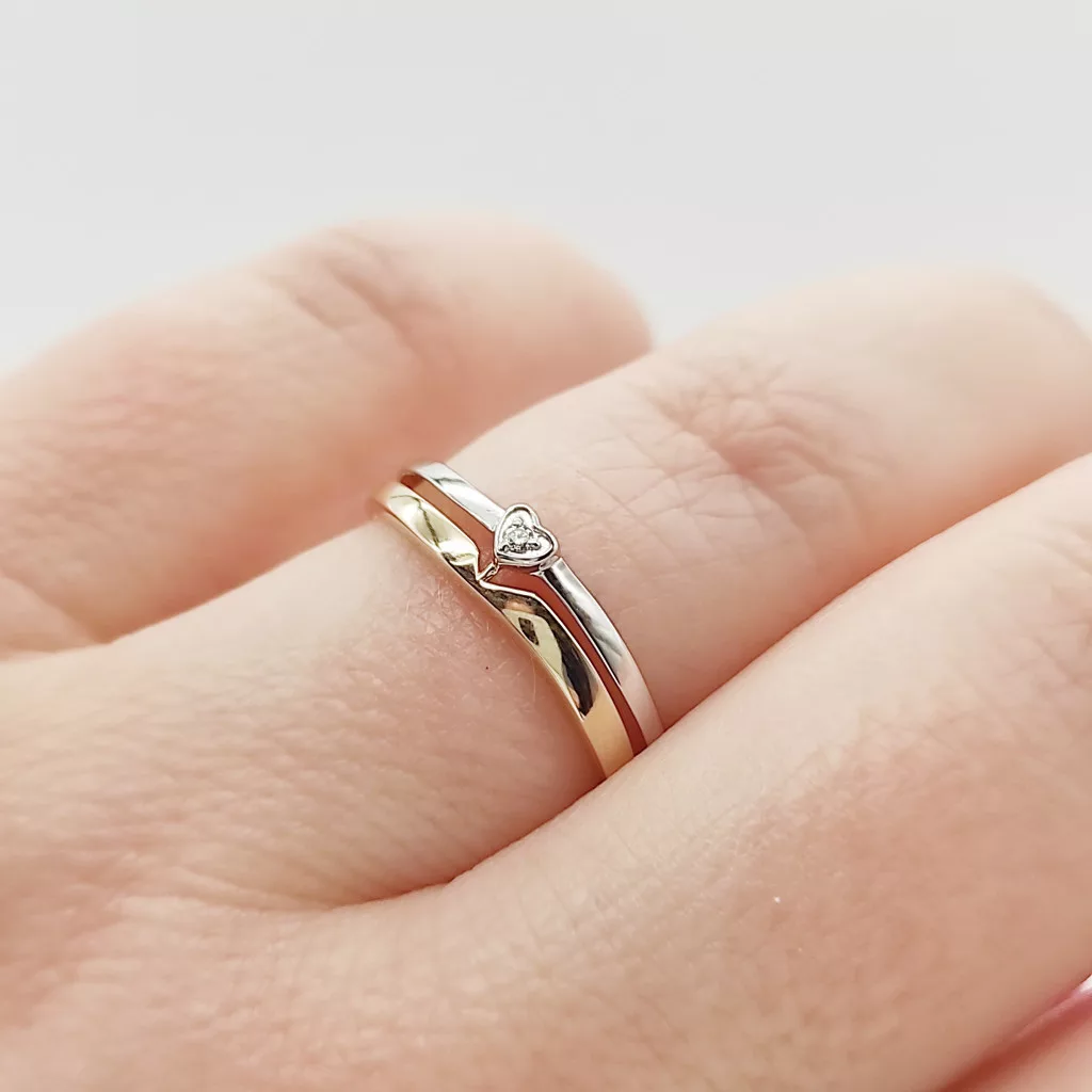 Sárga-fehér arany szívecskés gyűrű gyémánttal