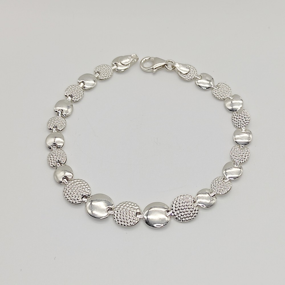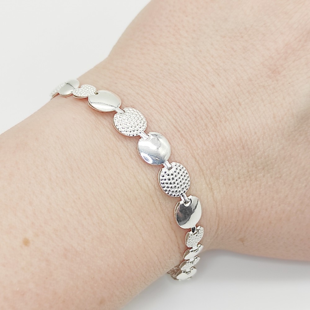 Ezüst elől szélesedő kerek mintás szegedi karlánc - 18 cm